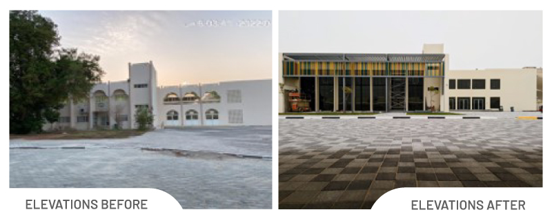 Provis Real Estate and Property Management company was tasked with refurbishing a non-operating (closed) school facility in Abu Dhabi. The project entailed transforming the Al Qurm School, located in Mohamed Bin Zayed City, into a fully operational facility in time for the 2022-23 academic year. The built asset was spread over 5500 sq metres and the overall developed plot was spread over 14,00 sq metres. A project completion timeline of 180 days was agreed upon by the stakeholders. The plot included outdoor play areas, central courtyard, parking, student’s drop-off areas, and landscaping.